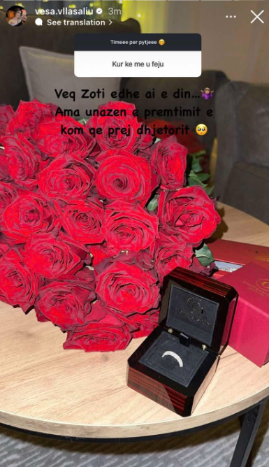 “Veq Zoti edhe ai e din, ama unazën e premtimit e kom që prej dhjetorit”, ishte deklarata e sinqertë dhe mjaft simbolike e Vesës, duke nënkuptuar se ndonëse fejesa formale ende nuk është bërë, ajo dhe partneri i saj janë të përkushtuar ndaj njëri-tjetrit dhe kanë ndërmarrë një hap të rëndësishëm drejt së ardhmes së përbashkët.