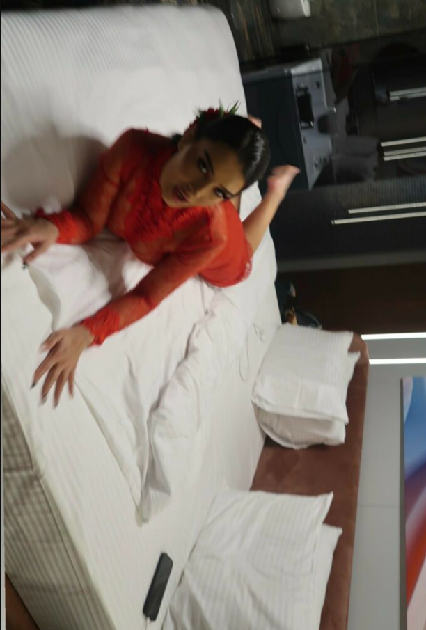 Moderatorja simpatike, ka pozuar e shtrirë në një shtrat, duke provokuar ndjekësit e saj.