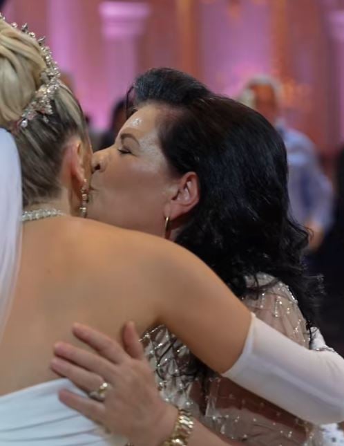 Në krah të saj, vjehrra shfaqet po ashtu me një paraqitje shumë dinjitoze, e veshur me një fustan të gjatë në tonet pastel të rozës, që i jep një ndjesi ngrohtësie, delikatesë dhe përkujdesjeje. Veshja e saj, ashtu si qëndrimi, rrezaton fisnikëri dhe përkushtim, duke theksuar edhe më shumë raportin harmonik që është krijuar mes dy grave – njëra që lë pas statusin e vajzës për të hyrë në jetën e bashkëshortes dhe tjetra që hap zemrën e shtëpinë për një anëtare të re në familje.