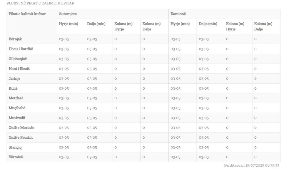 Sipas përditësimit të fundit të Qendrës Kombëtare për Menaxhim Kufitar pritjet janë për reth 5-10 minuta.