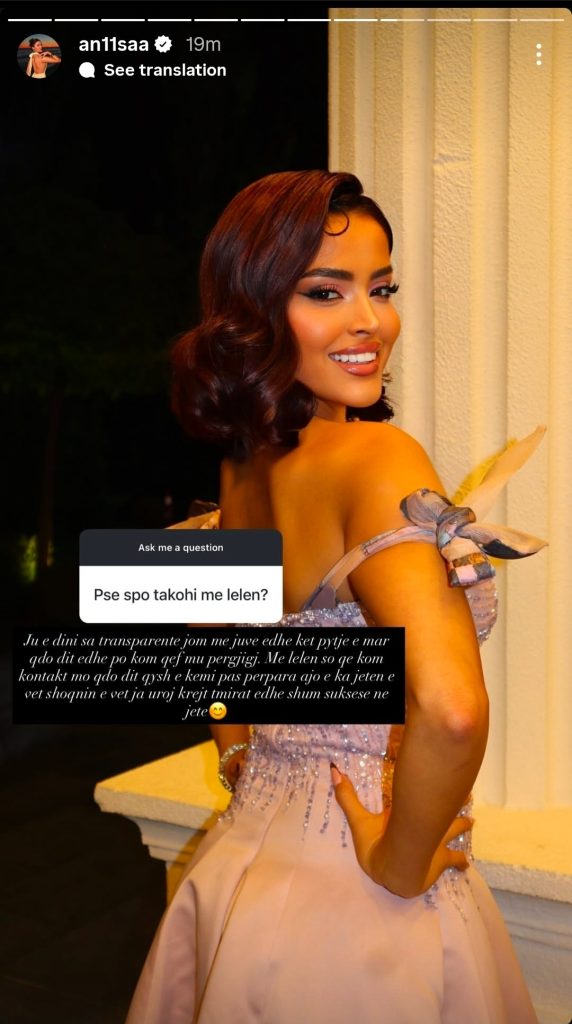 “Me Lelen s’qe kom kontakt mo çdo ditë qysh e kemi pas përpara, ajo e ka jetën e vet, shoqnin e vet, e unë ja uroj krejt të mirat edhe shumë suksese në jetë”, ka shkruar ajo në Instagram.