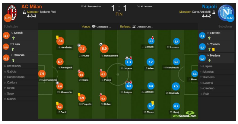 Milan 1:1 Napoli – publikohen notat e lojtarëve