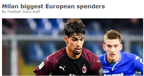 Asnjë klub europian nuk ka shpënzuar më shumë se Milan në afatin e transferimeve të janarit, pasi ata granatuan 70 milionë euro për Krzysztof Piatek dhe Lucas Paquetá.