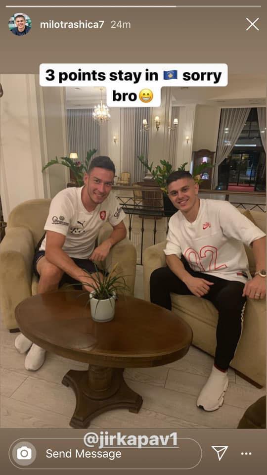 E duket se kosovari e ka mbajtur fjalën pasi në rrjetin social Instagram Rashica ka publikuar një foto me portierin, e ku edhe është një mbishkrim ku thuhet “Tri pikët do të qëndrojnë në Kosovë më fal vëlla”.
