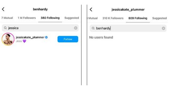 Ben ende e ndjek ish-të dashurën e tij të supozuar në Instagram, por ajo duket se nuk e ndjek më atë.