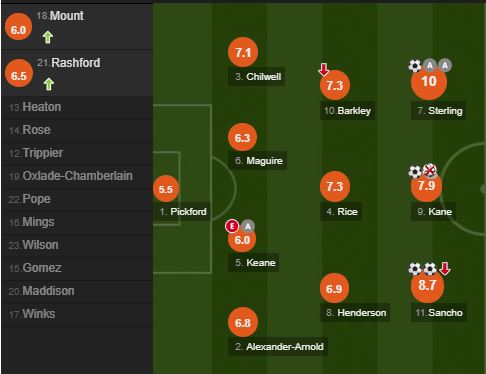Lojtari i kësaj ndeshjes sipas “Ëhoscored” është Sterling me notën 10.