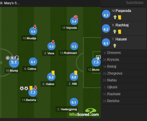 Te Kosova më i miri, dhe i dyti më i mirë në këtë ndeshje është vlerësuar Vedat Muriqi me notën 9.1.