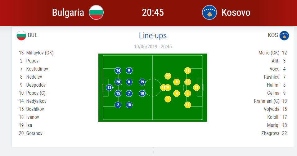 Janë publikuar formacionet zyrtare për sfidën mes Bullgarisë dhe Kosovës.