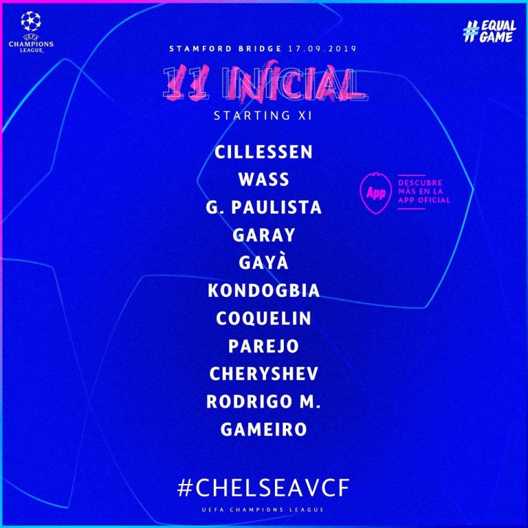 Ndeshja Chelsea – Valencia, pubikohen formacionet zyrtare