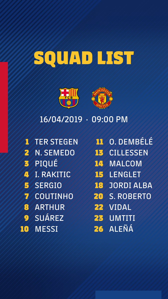 Më poshtë mund ta shikoni listën e plotë të Barcelonës ndaj Manchester United.