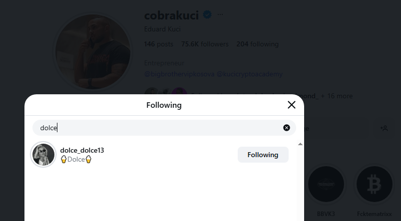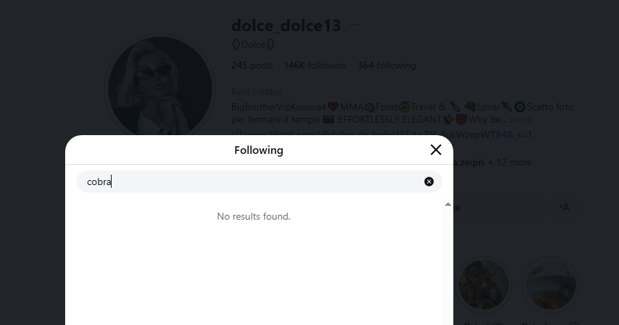 Duke hulumtuar rrjetin social Instagram shohim se modelja nuk e ndjek Edin në këtë platformë.