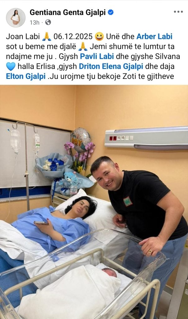 Në mbishkrimin që shoqëronte foton, Genta tregoi se Joani ka ardhur në jetë pak më herët nga sa e kishin parashikuar, por se pavarësisht surprizës, ai ka mbërritur i shëndetshëm dhe i mbushur me dashuri.