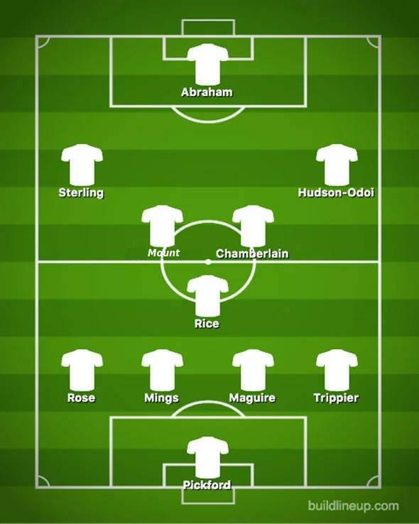 Raheem Sterling dhe Callum Hudson-Odoi do ta ndihmojnë Tammy Ambrahamin të vetmuar në sulm, e që do të shpresojnë në fitore ndaj Kosovës për të qëndrua lider të Grupit A.