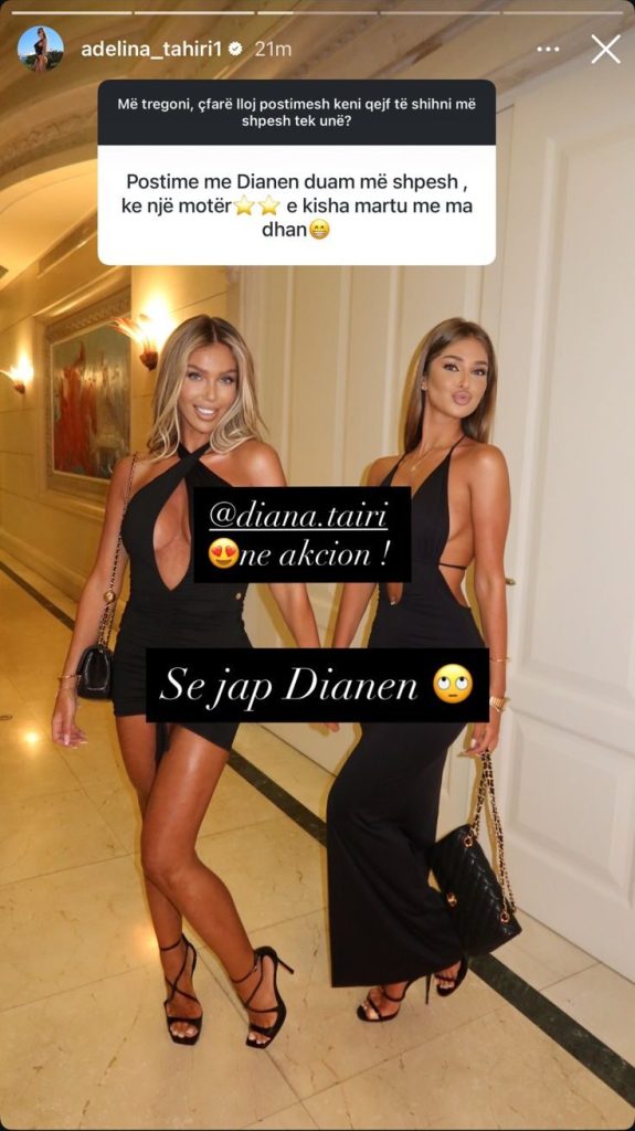 Këngëtarja e ka shoqëruar mesazhin me një foto ku shfaqet së bashku me motrën e saj, Dianën, duke e etiketuar: “Diana në aksion” dhe poshtë saj ka shkruar prerazi: