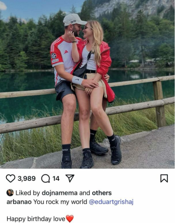 “Ti më trazon botën Eduard Grishaj, urime ditëlindjen dashuri”, ka shkruar Osmani krahas kësaj fotografie.