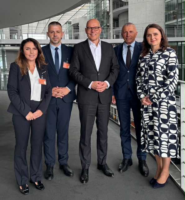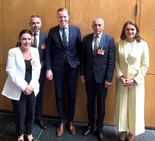 Deputetët gjermanë Andreas Schwarz dhe Knut Abraham, me të cilët u diskutua për sigurinë dhe rëndësinë e respektimit të të drejtave themelore si themel i paqes së qëndrueshme në Ballkan.