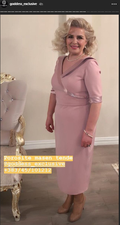 Sot, në intsagramin e dyqanit të saj ajo ka publikuar një foto ku shihet vjehrra e saj e veshur në fustanin qe ia ka zgjedhur reja dhe me këtë pamje po duket më bukur se kurrë./ORAinfo/