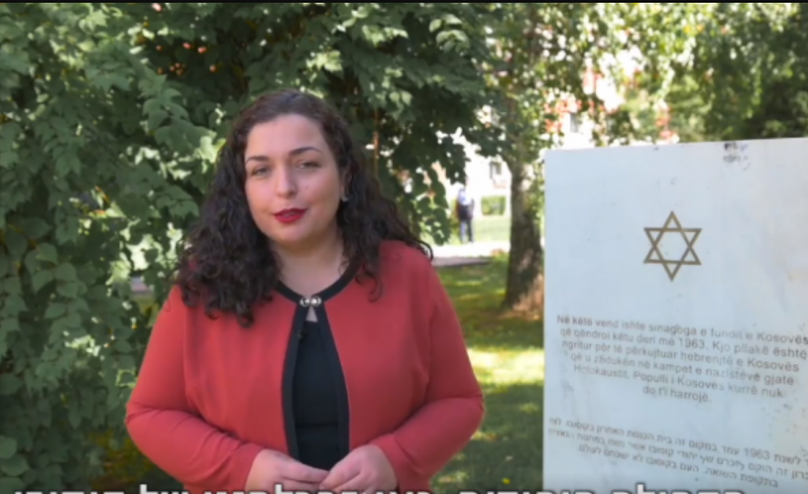 Kryeparlamentarja Osmani, në një video të realizuar nga oborri i Kuvendit të Kosovës, pranë pllakës memoriale të komunitetit hebrenj, për ta falënderuar Izraelin për njohjen reciproke.
