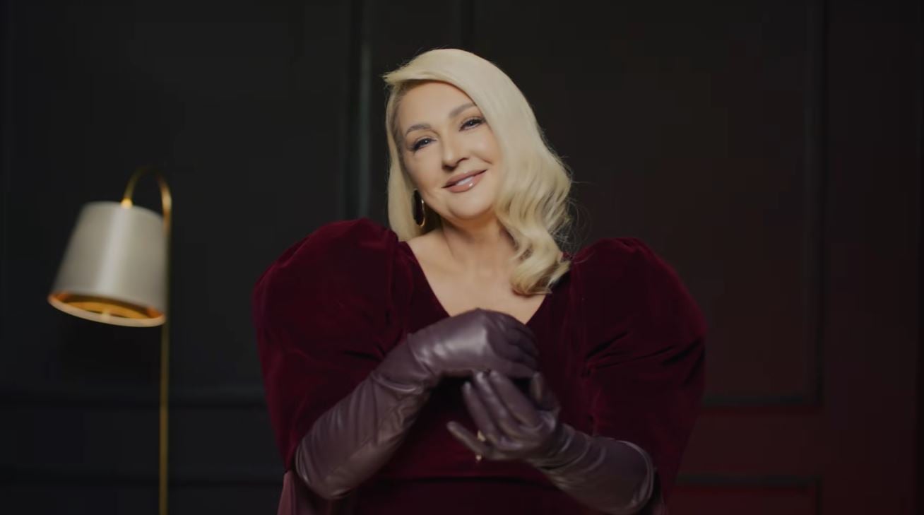 Flokët e saj të valëzuara rrjedhin natyrshëm poshtë shpatullave, duke i dhënë një ndjesi delikate dhe romantike, ndërsa grimi është minimalist, me nuanca neutrale që theksojnë tiparet e saj natyrale.
