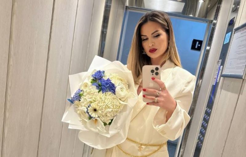 Ajo edhe sonte ka ndarë një fotografi me ndjekësit e saj në Instagram, ku shihet se në dorë mban një buqetë me lule.