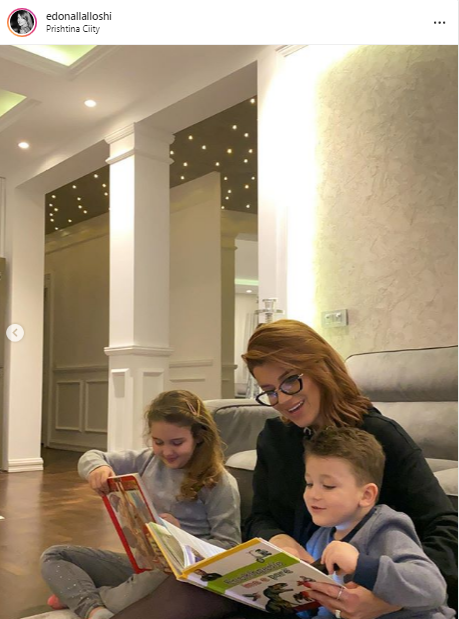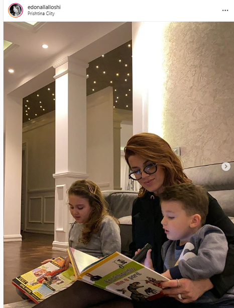 Sot, ajo ka publikuar një foto me djalin e vajzën, e të cilëve po u lexon përralla para gjumit./ORAinfo/