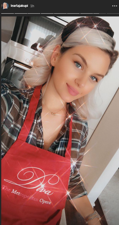 Sot, ajo ka publikuar disa imazhe me të cilat tregon se ajo di të jetë edhe një nuse shumë e zonja dhe sot ka përgatitur drekën për burrin./ORAinfo/