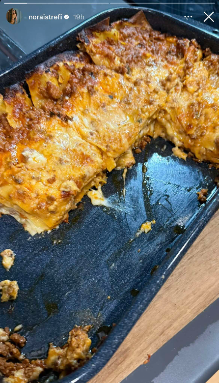 Së fundmi, Nora ka ndarë në rrjete sociale një foto me lazanje. Postimi ka tërhequr vëmendje për kontrastin mes trupit të saj perfekt dhe ushqimit kalorik që ka zgjedhur, shkruan Kosovarja.
