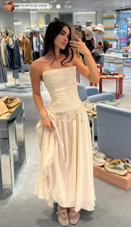 Në videot dhe fotografitë e postuara, ajo shihet duke eksploruar dyqane luksoze, duke provuar veshje me prerje të sofistikuara dhe ngjyra të ndritshme – tipike për sezonin e verës.