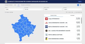 Ndërsa bazuar në rezultatet e përmbledhura nga KQZ, VV ka marrë 50.52% apo 462,487 vota dhe e dyta është PDK me 20.48% – 187,455 vota.