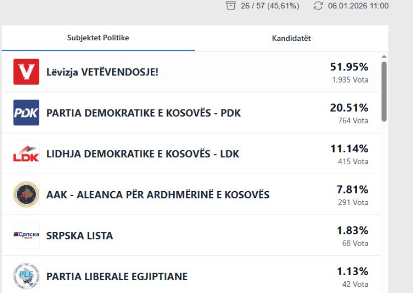 PDK deri tash nga votat me kusht ka 20.51%, ndërsa LDK vetëm 11.14%.