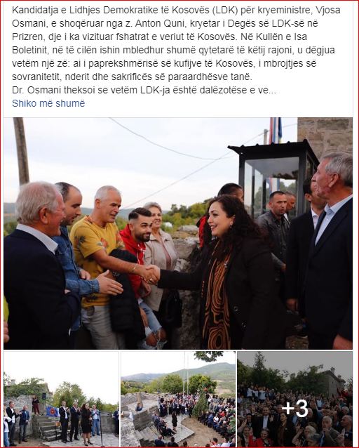 Kandidatja e LDK’së për kryetare të Qeverisë, Vjosa Osmani, së bashku me kreun e LDK’së në Prizren, Anton Qunin, kanë vizituar disa fshatra në veri të Republikës së Kosovës.