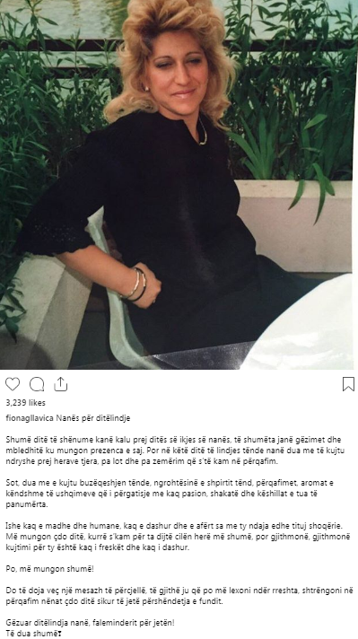Atë e gjejmë shumë aktive me postime në rrjete sociale dhe sot ajo ka bërë një postim e dedikim prekës për ditëlindjen e nënës së saj të ndjerë./ORAinfo/