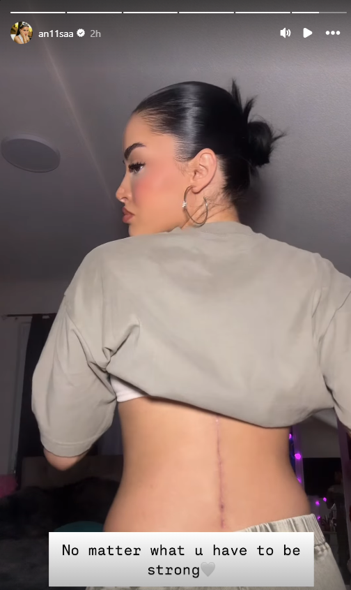 Në një video të publikuar në llogarinë e saj në Instagram, Anisa ka zgjedhur të tregojë pa filtra gjendjen aktuale të shpinës së saj, duke ekspozuar plagët ende të freskëta dhe shenjat e qepjeve, të cilat mbajnë dëshmi të një operacioni të vështirë dhe emocionalisht të ngarkuar.