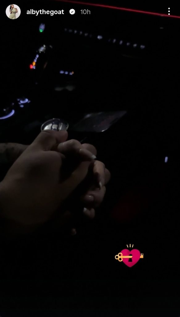 Përmes një fotografie të publikuar në Instagram Story, ajo shihet duke mbajtur dorën e partnerit të saj, teksa ndodhen në makinë, raporton ORAinfo.