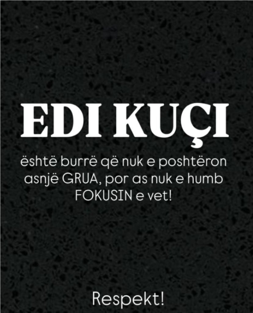 “Edi Kuçi është burrë që nuk e poshtëron asnjë GRUA, por as nuk e humb FOKUSIN e vet! Respekt!”