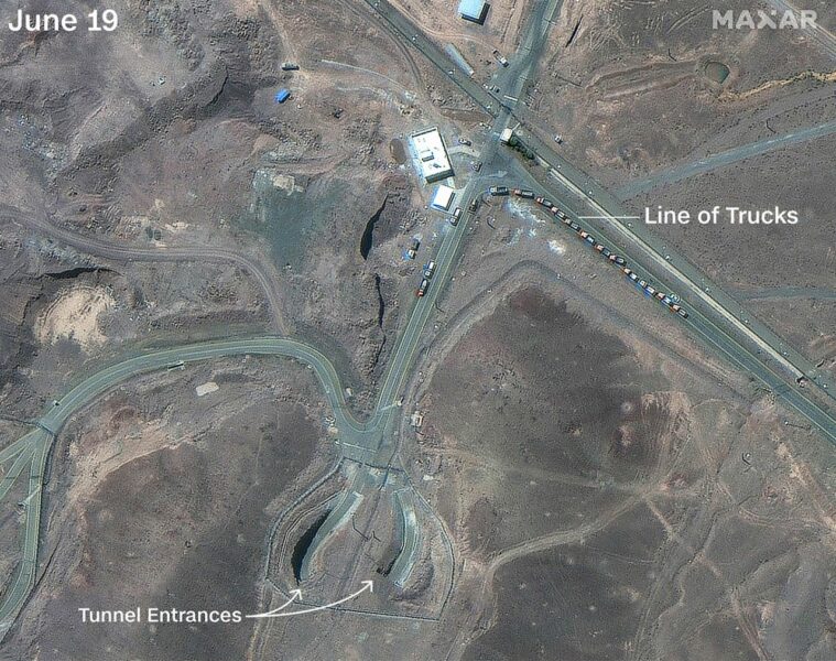 Në ditët para sulmeve të SHBA-së ndaj Uzinës për Pasurimin e Karburantit në Fordow, pamjet satelitore duken se tregojnë dhe të grumbulluar përpara të paktën dy prej hyrjeve të objektit nëntokësor.