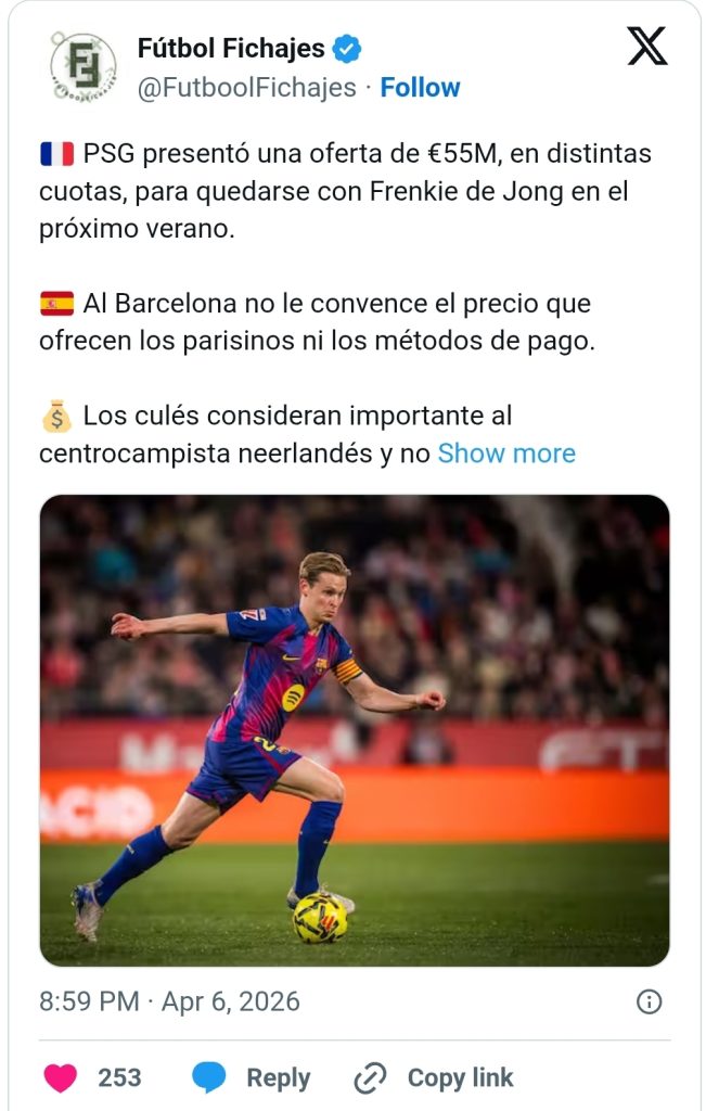 Frenkie De Jong është përsëri protagonist në mjedisin e Barcelonës, jo vetëm për shkak të rikthimit të tij pas lëndimit, por edhe për shkak të interesit të Paris Saint-Germain.