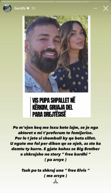 “Kur isha në shtëpinë e Big Brother-it, ai postonte për mua. Tani, ndjej ta bëj të njëjtën për të – së paku një fjalë të mirë”, shkruan Bardhi në reagimin e tij.