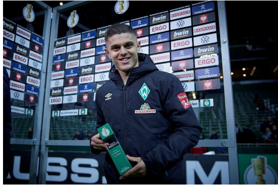 “Në rundin tjetër të Kupës së Gjermanisë”, ka shkruar Rashica në Instagram, derisa ka postuar foton me çmimin e lojtarit të ndeshjes.