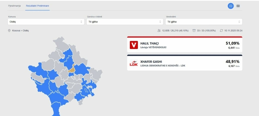 Kjo pasi që kandidati i VV-së në këtë komunë, Halil Thaçi mposhti Xhafer Gashin e Lidhjes Demokratike të Kosovës.