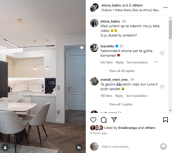 “Ka klas dhe ngrohtësi në çdo cep të shtëpisë”, “Një shtëpi që të fton të rrijë brenda”, “Ky është ambienti ideal për të rritur një fëmijë të lumtur” – janë vetëm disa nga komentet e shumta që janë lënë në profilin e moderatores.