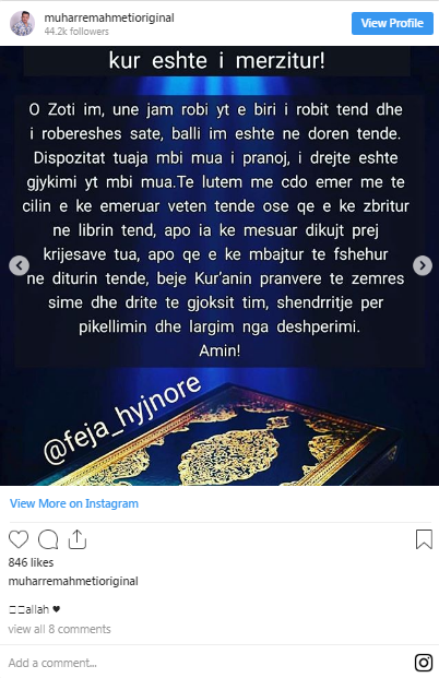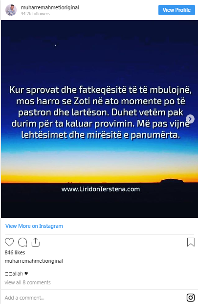 Në Instagramin e tij që numëron 44 mijë ndjekës, Ahmeti ka publikuar një thënie me 16 shtator.