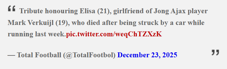 Klubi Jong Ajax dhe bashkëlojtarët e Mark Verkuijl kanë shprehur dhimbjen e thellë për këtë humbje të madhe, duke e cilësuar Elisa-n si një vajzë plot jetë, energji dhe dashuri, ndërsa i kanë qëndruar pranë lojtarit të tyre në këto momente të vështira, shkruan Indeksonline