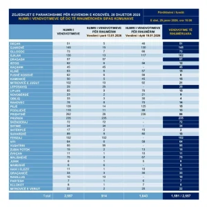 Sipas zëdhënësit të KQZ-së, Valmir Elezi, që nga fillimi i procesit të rinumërimit, të martën më 13 janar 2026 në orën 18:00, dhe deri të dielën, më 25 janar 2026 në orën 10:00, janë rinumëruar 1,591 vendvotime nga gjithsej 2,557 vendvotime, duke përfaqësuar mbi 62% të totalit.
