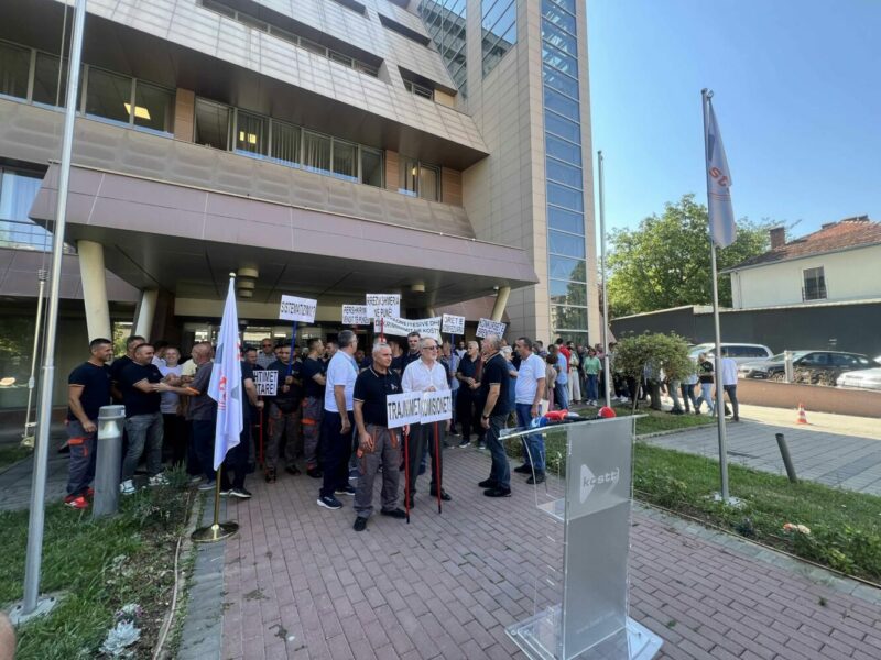 Sindikata e pavarur e punëtorëve të KOSTT-it po mban protestë para ndërtesës së KOSTT-it në Prishtinë.