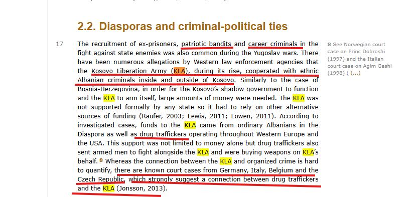 Ai theksonte se fondet për UÇK-në nuk vinin vetëm nga diaspora shqiptare, por edhe nga rrjete të trafikut të drogës që operonin në Evropën Perëndimore dhe SHBA.