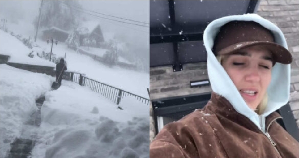 Në një video të publikuar në rrjete sociale, Iliriana shfaqet duke pastruar borën në oborrin e shtëpisë, ndërsa thekson se për shkak të kushteve të motit, ata kanë mbetur të izoluar në shtëpi.