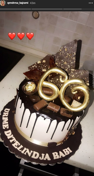 E për këtë ditë Qëndresa ia ka bërë atij suprizë një ëmbëlsirë me mbishkrim ‘Urime ditëlindja babi’./ORAinfo/