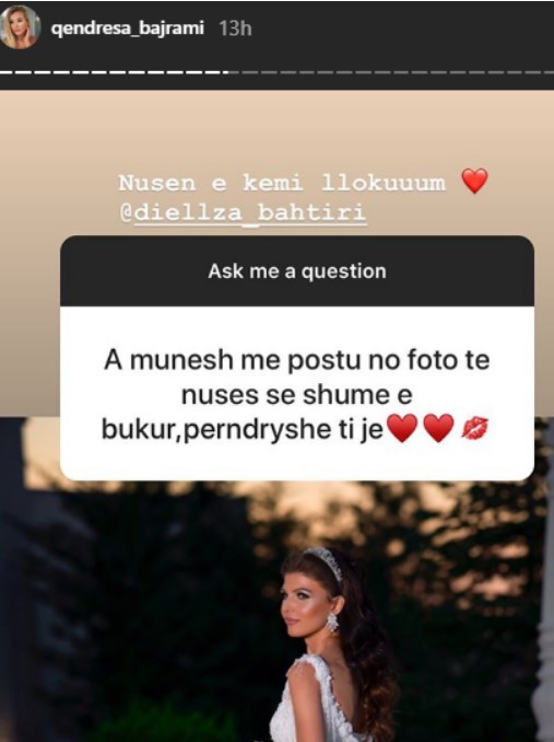 Kurreshtja e ndjekësve ka qenë të dijë se kë e martoi Qendresa dhe kanë kërkuar fotografi të çiftit. Ndërkohë ajo ka bërë me dije se personi që është martuar, është pikërisht vëllau i saj.