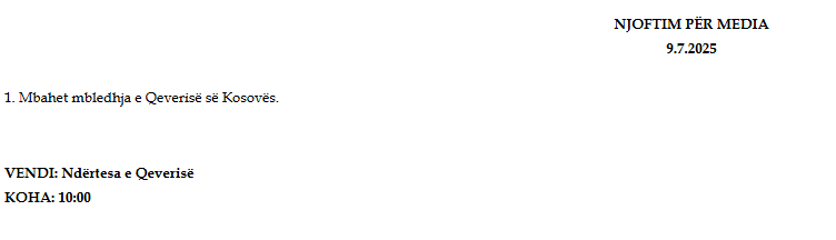 Sot nga ora 10:00 do të mbahet mbledhja e Qeverisë në detyrë të Kosovës.